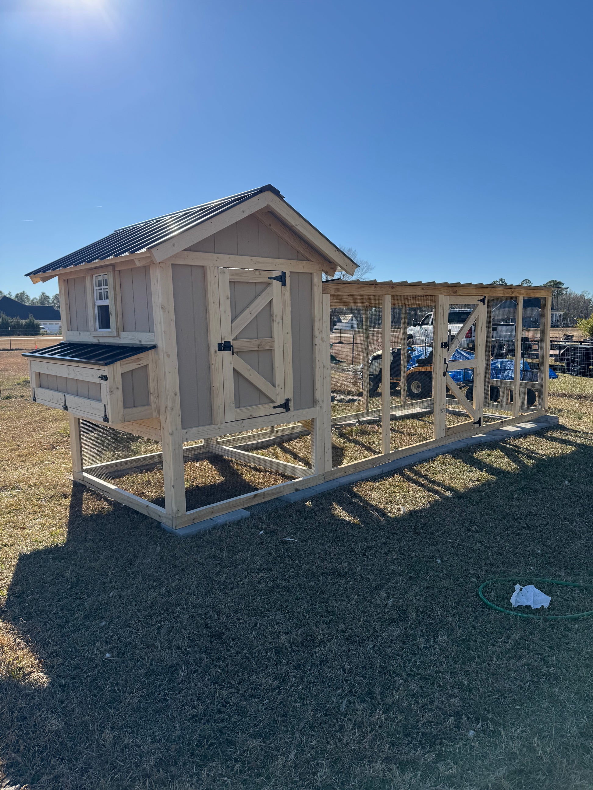 The henhouse is 4' X 4' or 4' X 5' with run options in 12' 15' and 18'