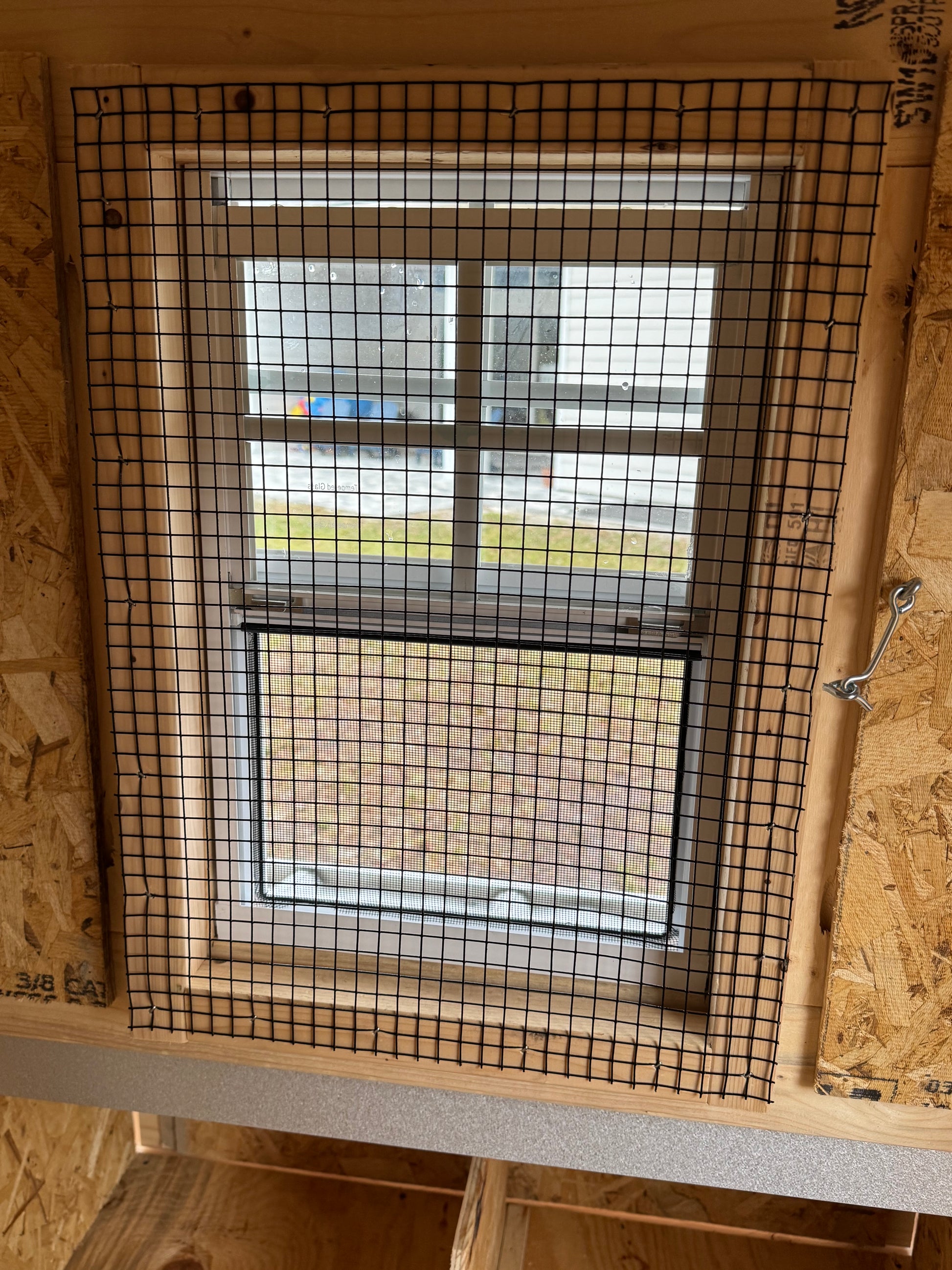 All of our coops have a pressure treated base with anything that makes ground contact. Everything else is sealed with exterior SW paint unless an unpainted coop is purchased. We recommend painting asap to ensure the longevity of the coop. We use 19 guage black pvc coated hardware cloth and our coops come standard with LP smartside (T1-11 upon request).
